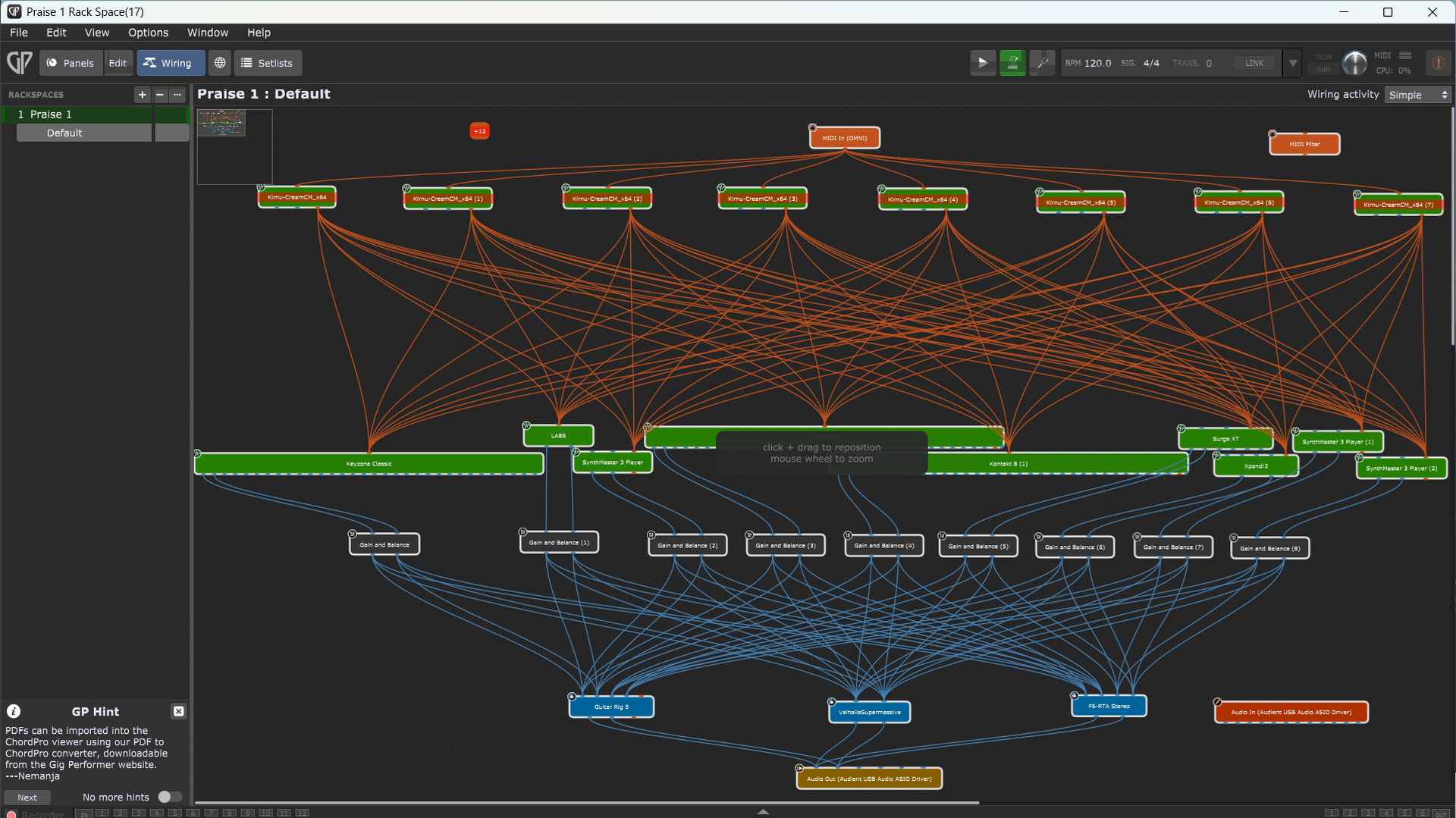 I have exactly the same settings (driver + hardware) in my DAW and everything works fine in that and also, GP wasn’t doing this yesterday, or last week, but even after multiple reboots, it does it all the time now (on different plugins)! I have increased the buffer size (768 making the delay around 15ms) and still no good (my DAW is set to a buffer size of 256 & is working fine).