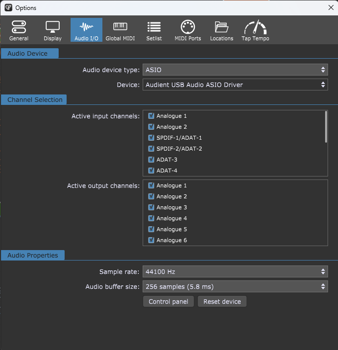 I also add here that my DAW (Acoustica Mixcraft) has accepted the Audient just fine & is working without issue (as it was before the my old audio interface) @ a 256 samples / second rate (so around 5.8ms).