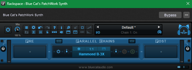 An interesting note: If you put B-3X inside Blue Cat Patchwork Synth, you can bypass and unbypass the slot it occupies in Patchwork and there is no pause at all. You still get the CPU savings while it is bypassed. It also improves the delay in the notes when coming out of bypass.