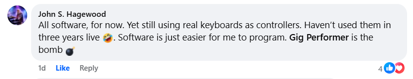 I did a lot of sequencing and MIDI work back in the late 80s and early 90s and then took a long break to raise a family. Got back into live playing and MIDI again about 6 years ago and had a pretty steep learning curve with all the new gear, VSTs, and new software. Gig Performer has been one of the easiest to get started with! – (source)