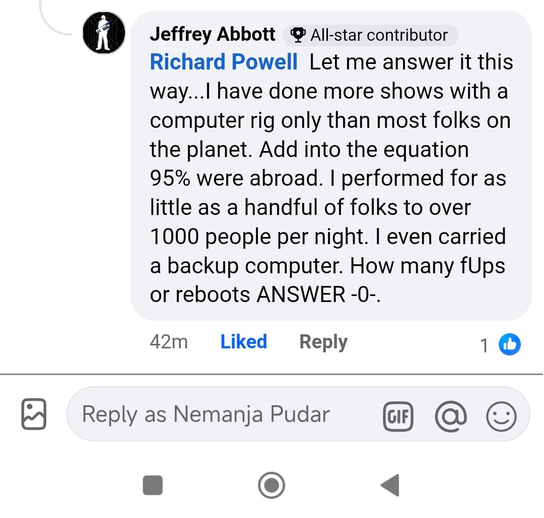 A laptop system coupled with a good battery powered pa, i can usually go 1-2 hours before worrying about anything.