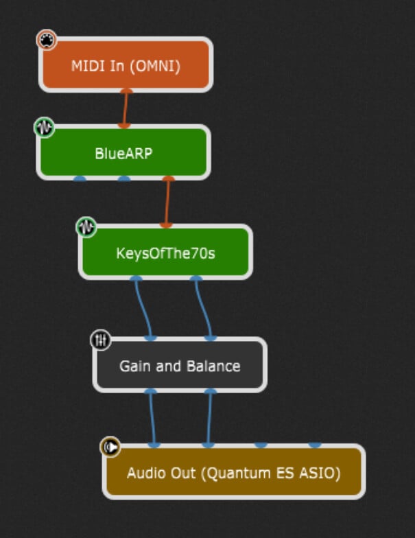 I need an arpeggiator and I’ve been following your links. Does anyone know why I can’t integrate them? I’ve tried Blue Arp and Hypercylic from mucoder and I can see the block on the wiring page. I can also connect the MIDI cable. It’s just that the MIDI notes aren’t being processed by the plugin.
