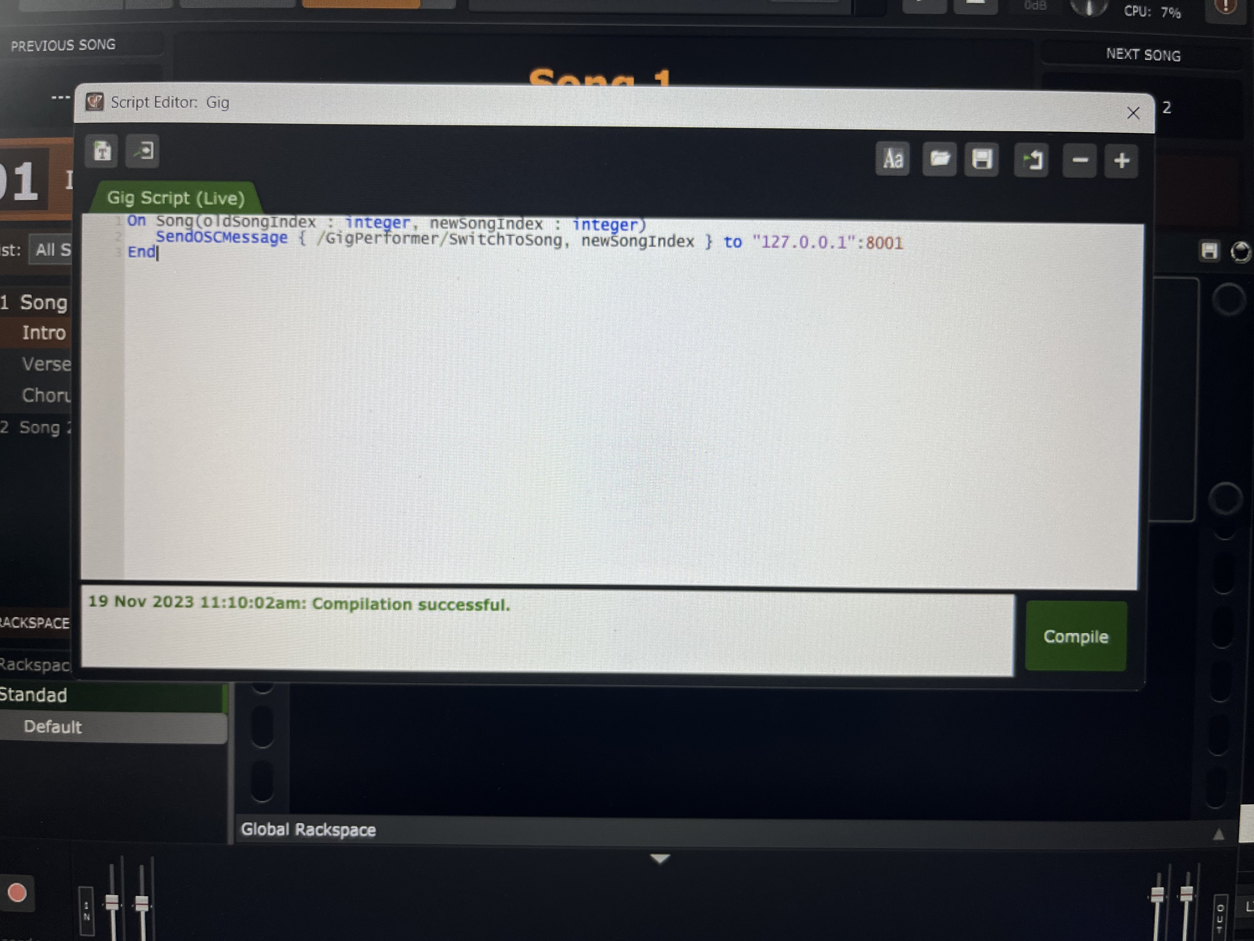 SendOSCMessage { /GigPerformer/SwitchToSong, GetCurrentSongName(), 0 } to "127.0.0.1":8001