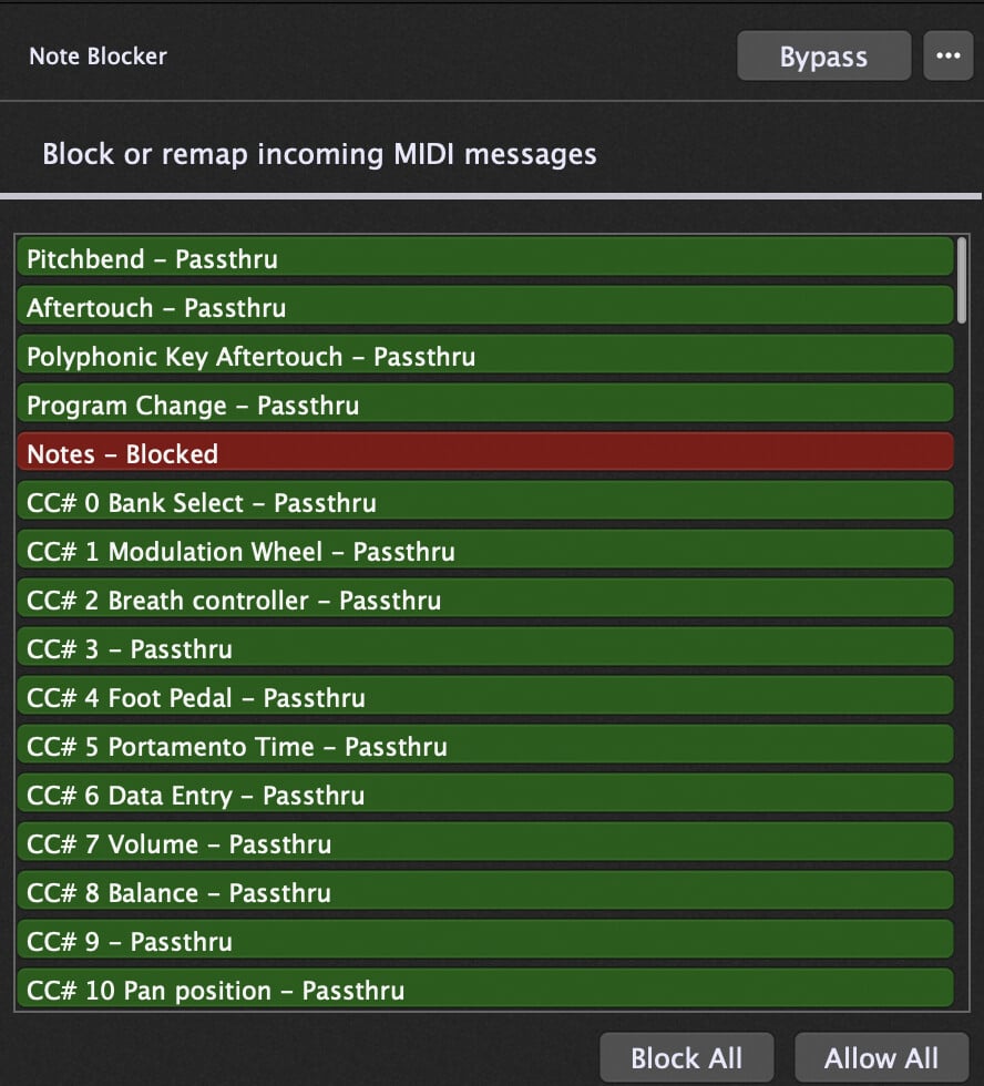 Wow, that’s incredible — it works! Thank you so much for your explanation. I never would have figured that out on my own. I didn’t place the blocks in the Global Rackspace, because when I switch to another song, the filter doesn’t reset unless I manually press the Note Blocker button. Since I only need this feature in a few songs, it’s fine for me to keep it in the regular Rackspace.