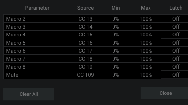 Not sure what parameters to assign. Also each Sampletank instrument is on their own midi channel, so don’t I have to send the CC on their specific channel? See photo of SampleTank MultiInstrument. I’m trying to turn the mute buttons on and off for each individual instrument. I right click them it shows midi learn, or midi assignments with 8 Macros with parameters and CC