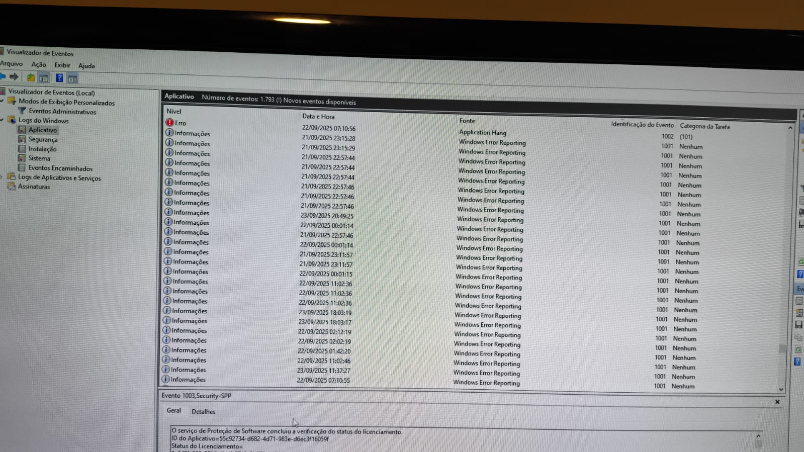 I`m checking in the Event Viewer and there are no events on the date and time of the logs registry. I saw some reports on 1001 events from earlier days but those did not close the gig performer - and i could not notice them.