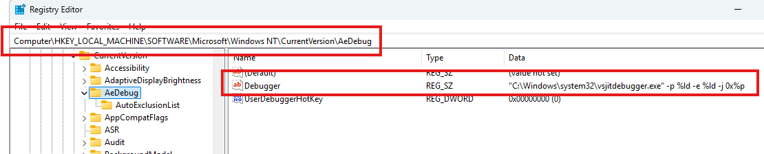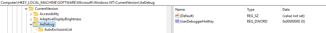 But you should probably have the windbg entry - not sure why you have “value not set”