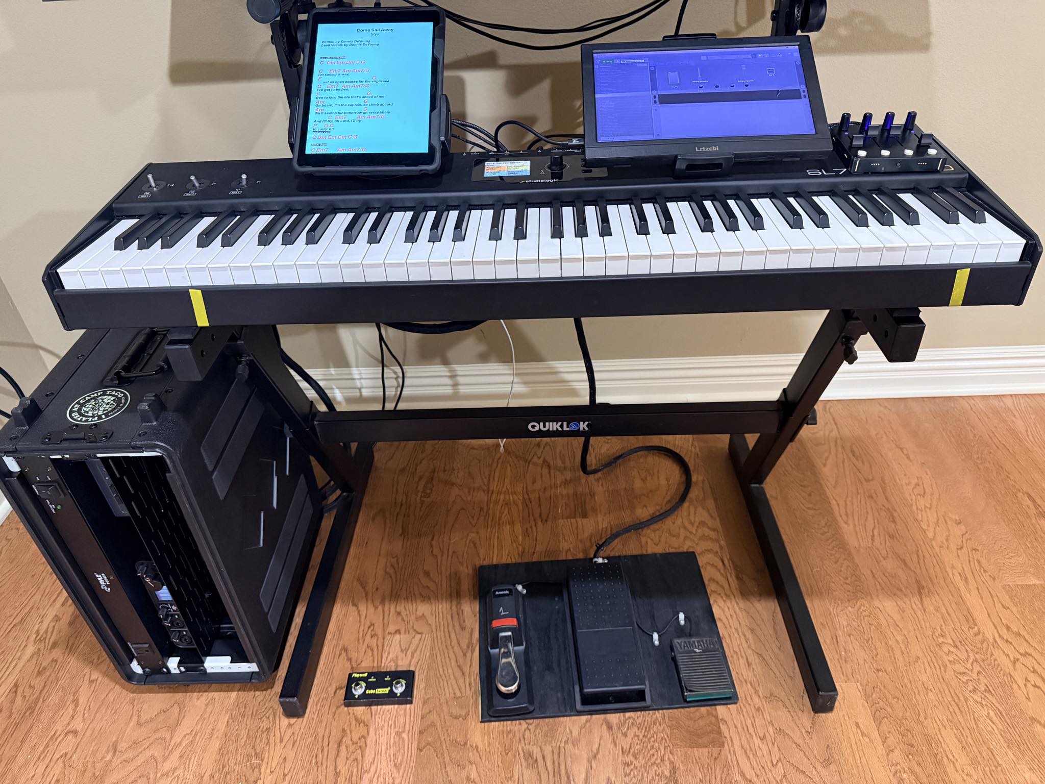I was pleasantly shocked when I discovered my SL73 fit in an old SKB “61” case. Saved a couple hundred dollars right there. Another benefit to the Studiologic controller is the fact that it’s housed in metal. Durable, plus I am using magnetitic clamps to “mount” my iPad and monitor. Adhesive magnetic strips on the bottom of the Intech controller.
