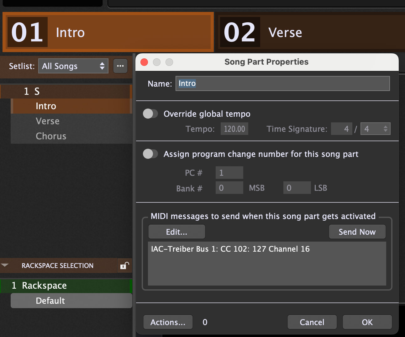 Or in Set List Mode you can send Messages when a Song Part is selected