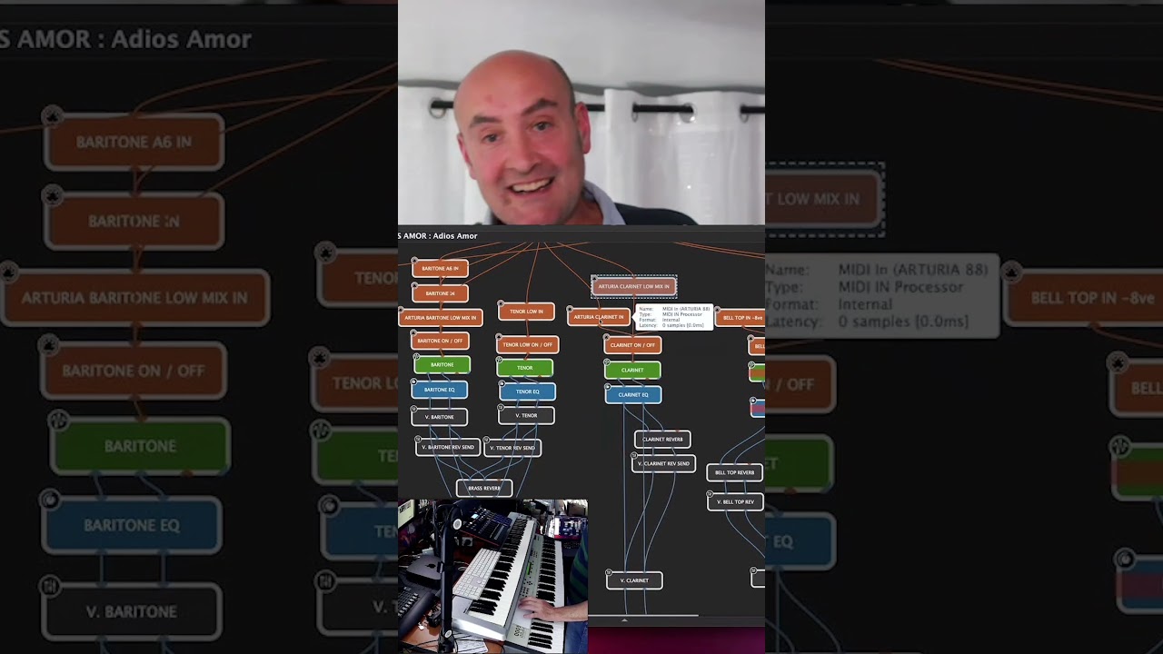 In Mainstage, for example, I’d have to load it three times, that same clarinet, in one song! This way, (i.e. in Gig Performer) you don’t have to do it; you just wire it there! That was what really got me.