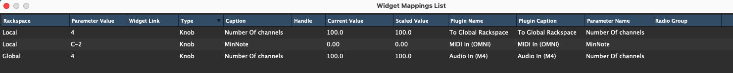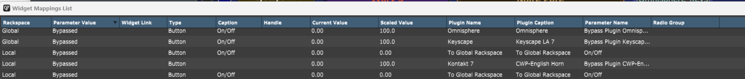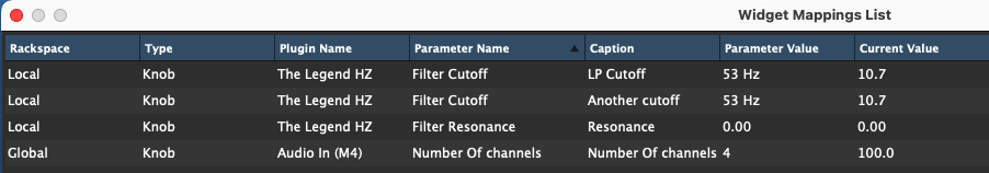 The list is long and many are used but I’ve forgotten what widgets some parameters are ‘mapped’ to. There doesn’t see to be an intuitive way to “display” the global parameter mappings. The Widget mappings window doesn’t show the global parameters.