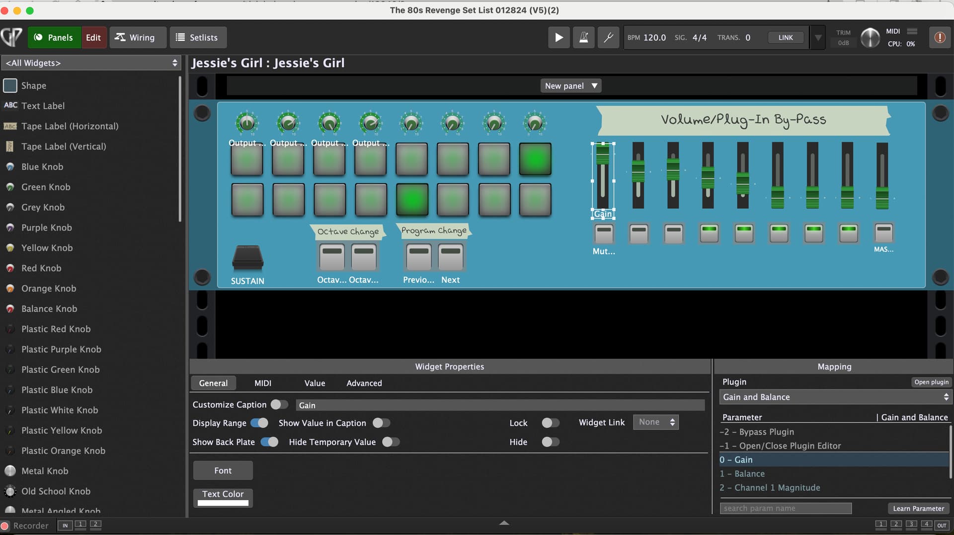 Currently, in each song, I use the following set up: Launchkey 88 controller → Plugins → gain block → audio interface (Personus). I have then gone to the edit screen and have been manually mapping each slider and button to a corresponding gain and mute for each gain block. I also have rotary knobs on the controller that I manually map to the gain for each of the 4 outputs on the personus. This allows me individually control the volume of each plugin in the song and then the overall gain per channel.