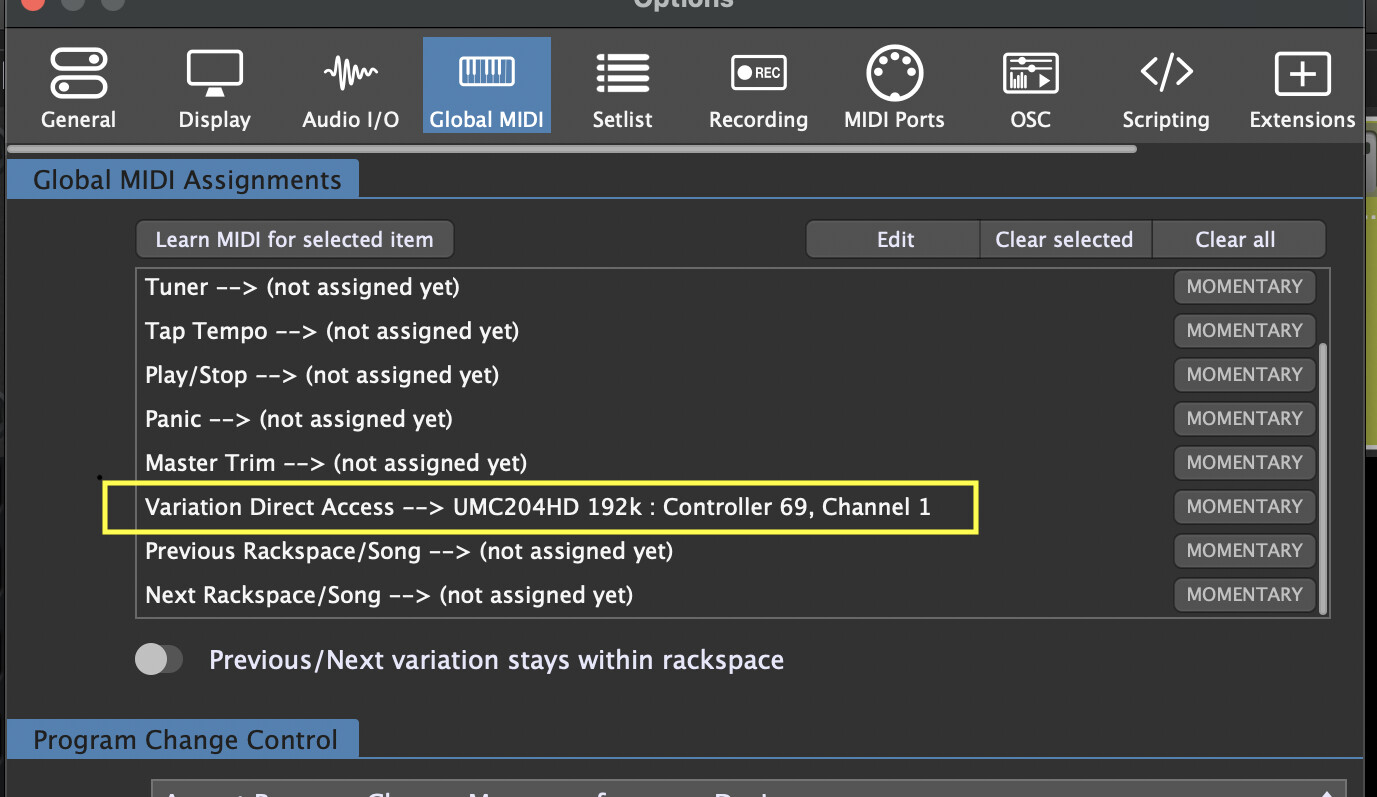 I have also another question. In Global Midi Assignments section inside Global MIDl, The “Variation Direct Access” requires that I point to the current interface, in order to assign the controller to CC69. Without this, the local Rackspaces won’t be able to switch to the correct Variation. Currently the Helix Snapshots reflect different variation.