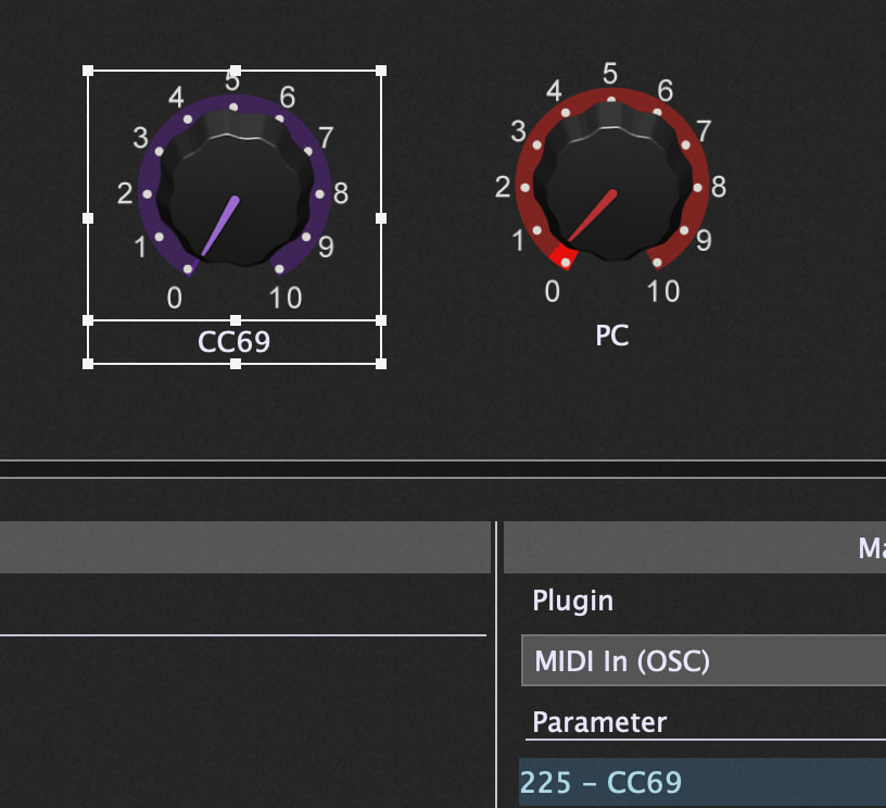 Add another knob widget to the global panel and map it to the CC69 parameter in the midi in block: