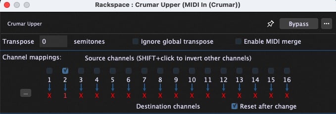 If m.GetChannel() == 1 Then InjectMidiEventViaRigManager(CRUMAR_MOJO_UPPER, m.WithChannel(2)); End