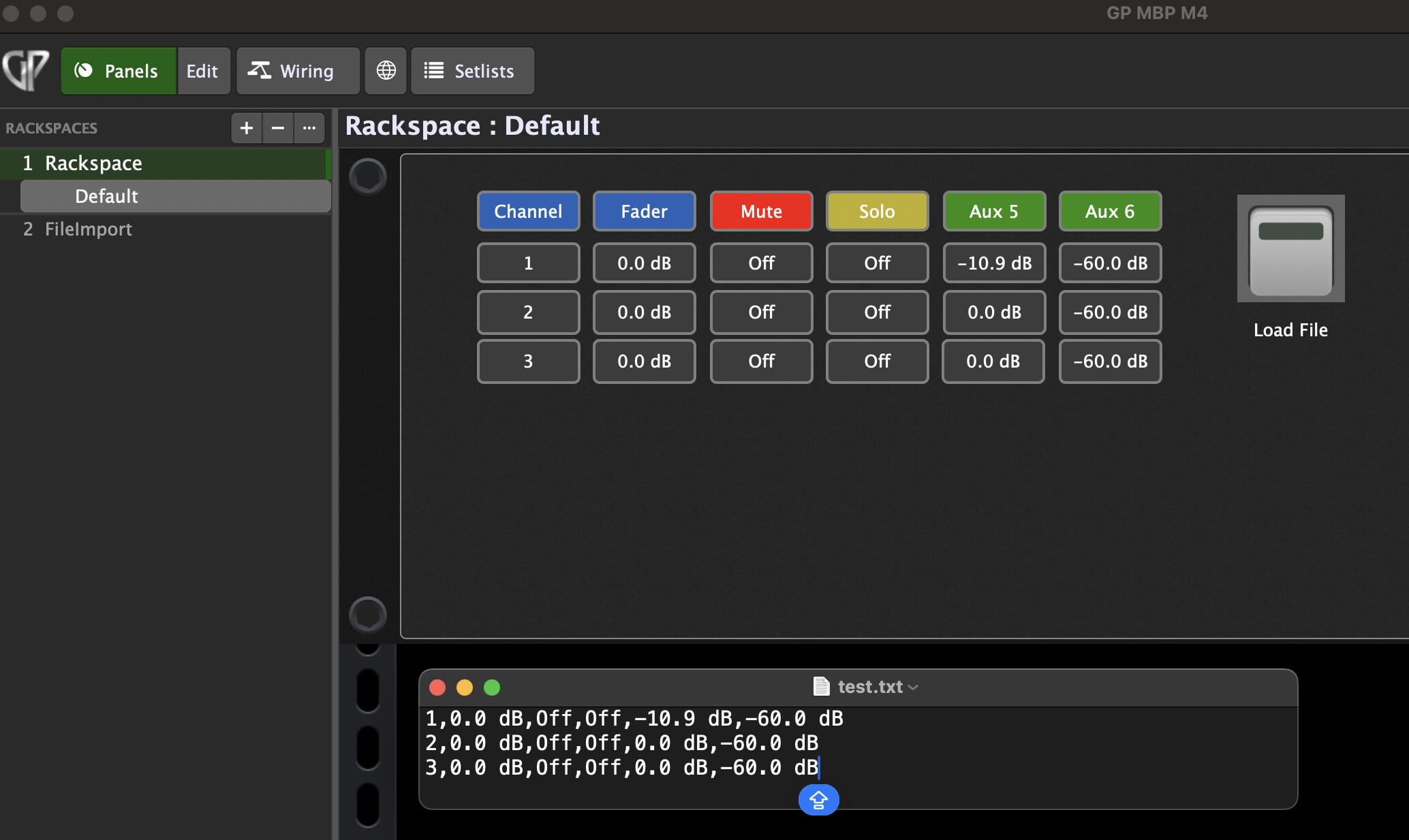 echo "Channel,Fader_dB,Mute,Solo,Aux5_dB,Aux6_dB" > "$OUTPUT_FILE"