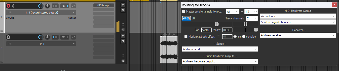 Yes, exactly. As soon as I switch the Reaper track recording mode to Record: output, audio from the GP Relayer plugin starts playing back through Reaper.