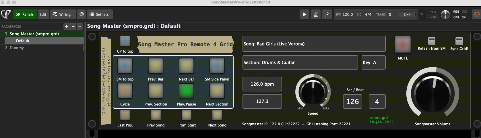 Load the attached Gig file, start Song Master Pro, and test it!