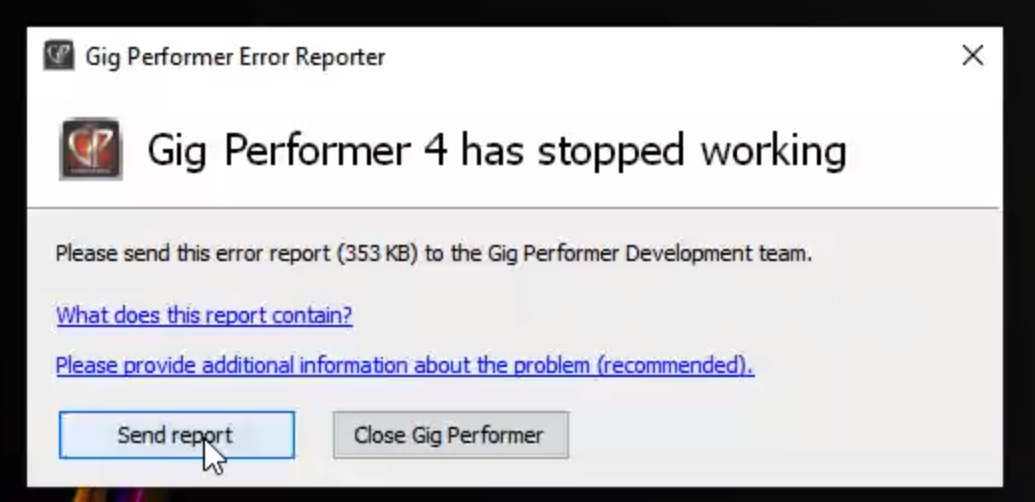 @jpt said, “…*clicking on “Send Report” only sends a report to MicroSoft.**”