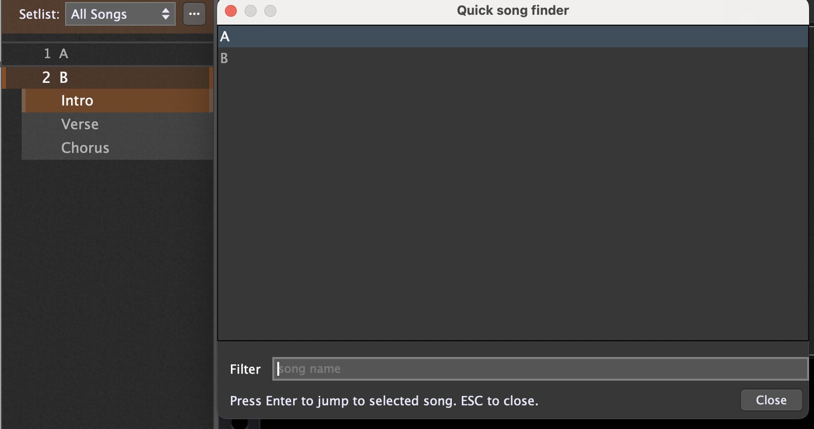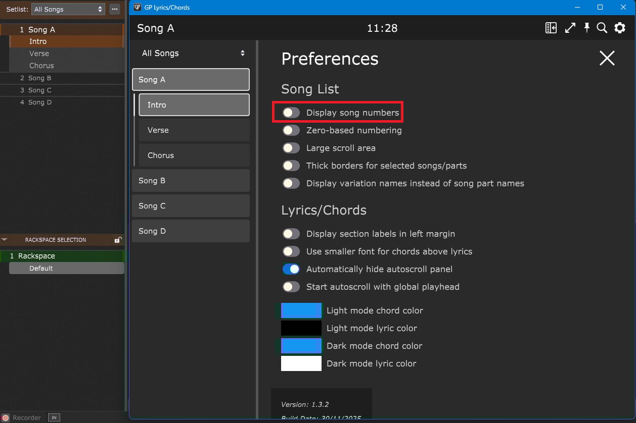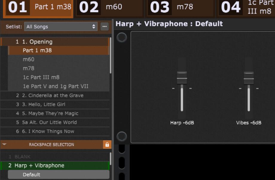Once the show starts, it’s straight down the setlist. To me, it makes little sense to see all of the numbers if the song titles I have also have numbers directly associated to them. In rehearsal, the director will say, let’s run number 6b, so I look at my setlist and find the title that says 6b. Unfortunately, there is also another different number preceding that, and I see no way to hide this value. It’s not a dealbreaker, just extra noise to parse on the screen when you are quickly trying to find your starting point for rehearsal.