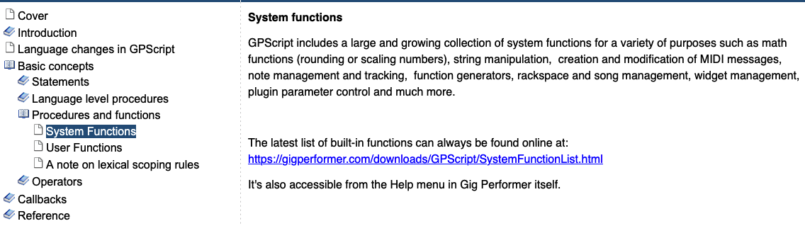 BTW, I’ve been using Introduction to GPScript for Gig Performer for reference. I searched for IndexOfSubstring and StringToInt but nothing is found. Is there a more up-to-date reference that I should be using?