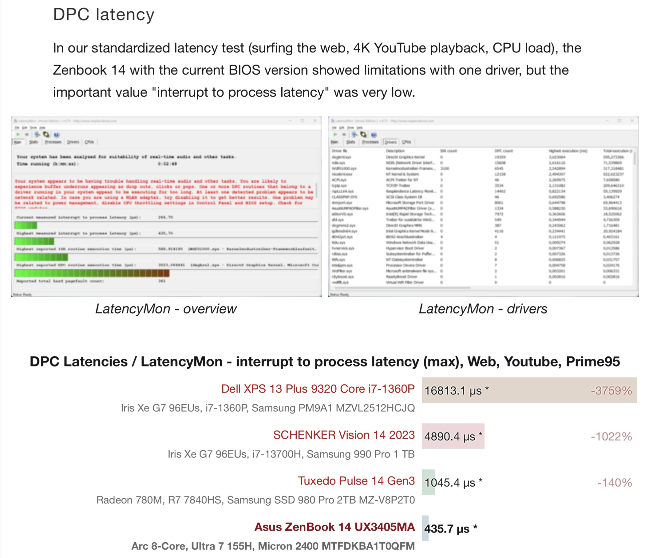 Latency has most of the time more to do with the environment the cpu works in than the cpu itself (chipset, bios, gpu, a.k.a. the laptop). I would not buy any this entire model/range.