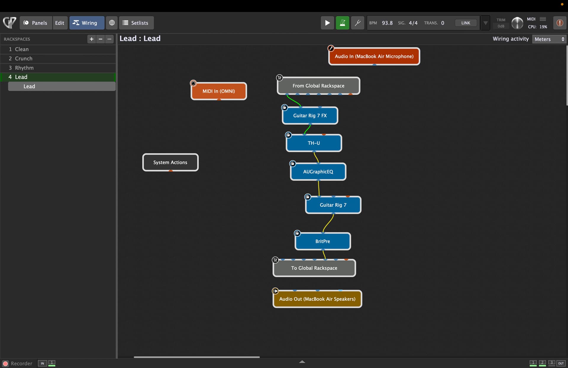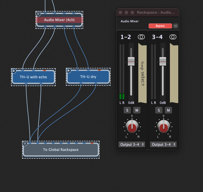 For guitar, input muting should be 0s, as you don’t want your guitar DI still going to the old rackspace once you switch to the new one.