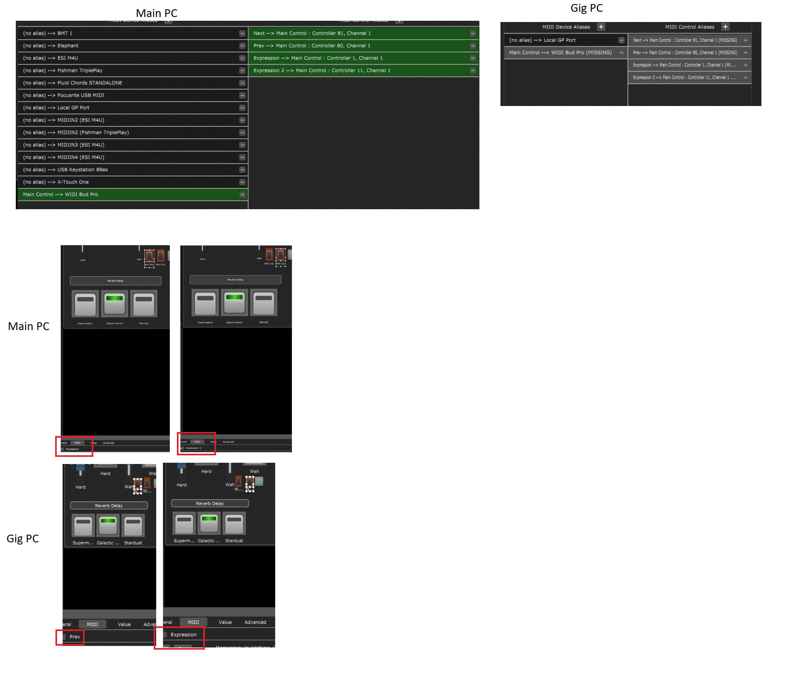 When I open the gig I see what Midi messages are learned by the widget and it is like for your Main PC.