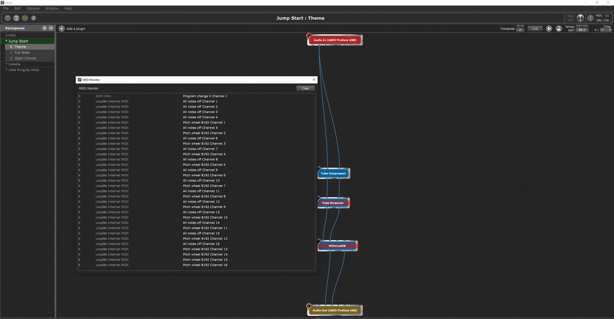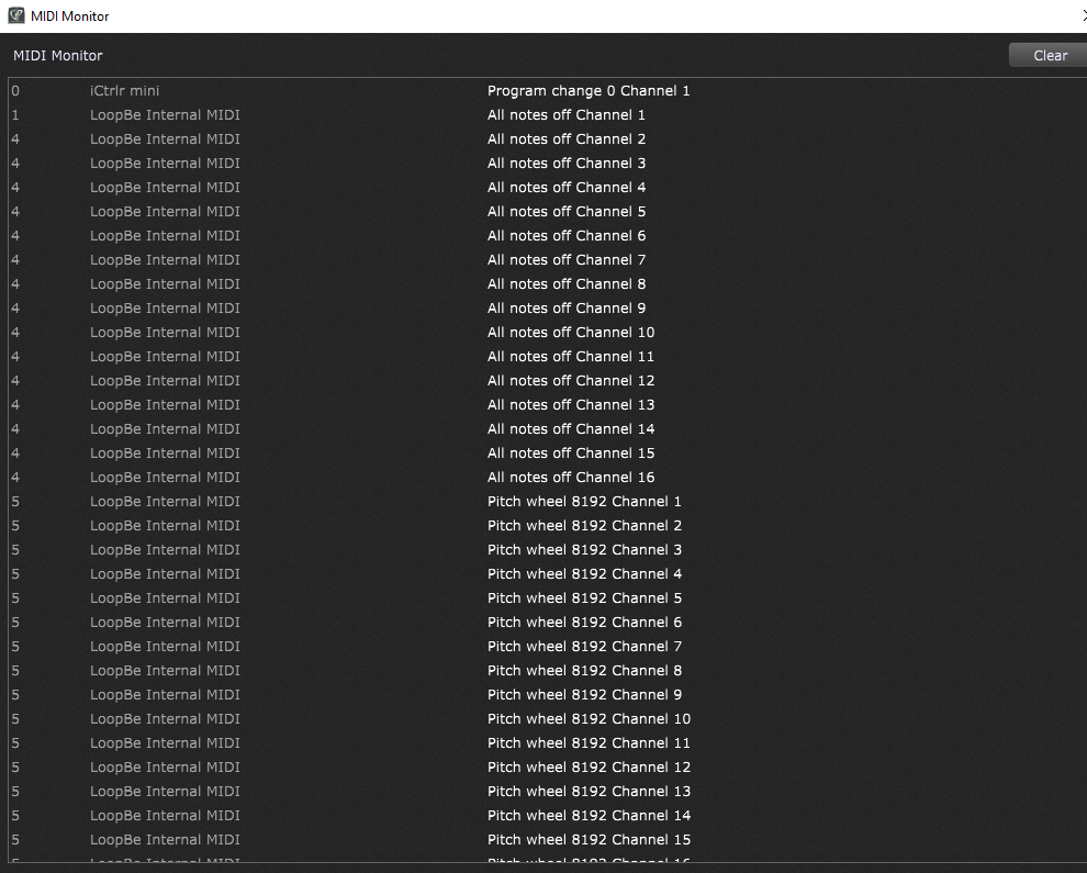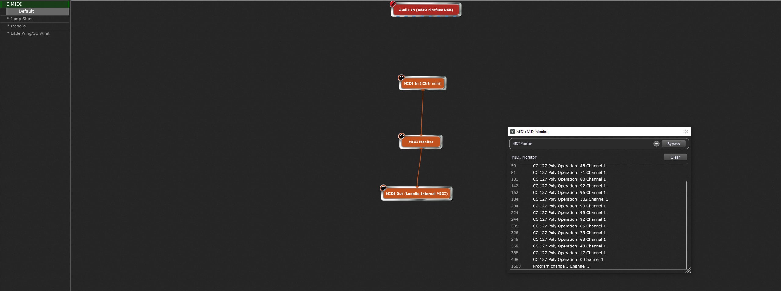If I am in another rackspace, with my plugins, the MIDI monitor only shows “iCTRL mini program change”, not all that Loopbe Internal MIDI weird stuff