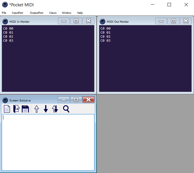 This is, somewhere, the point. If I am in the rackspace with the MIDI in and out stuff, both Pocket MIDI and the MIDI monitor of GP show a strange behaviour.