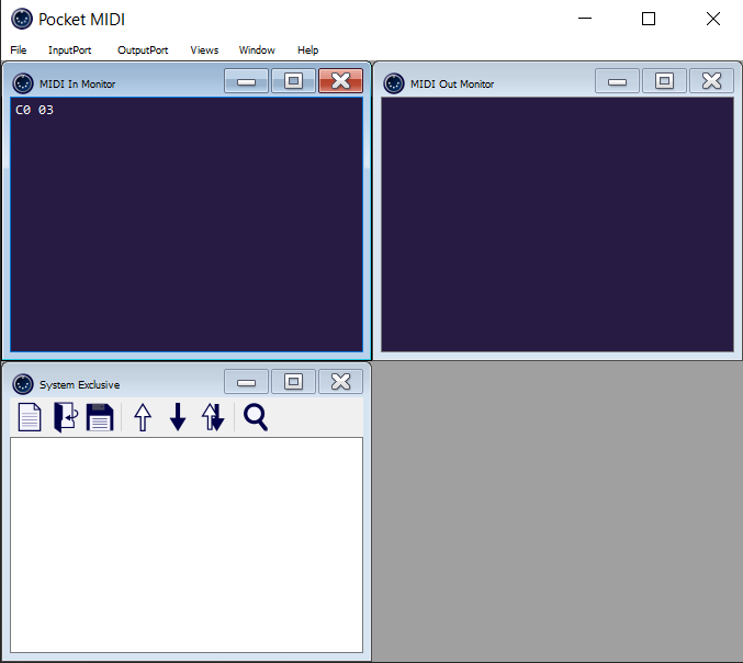 Well… Closed GP, reopened it. That’s what MIDI monitor shows if I click something in the MIDI controller: