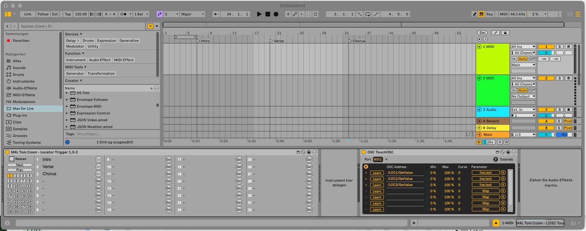 Download the free Tom Cosm M4L Device called “Locator Trigger”