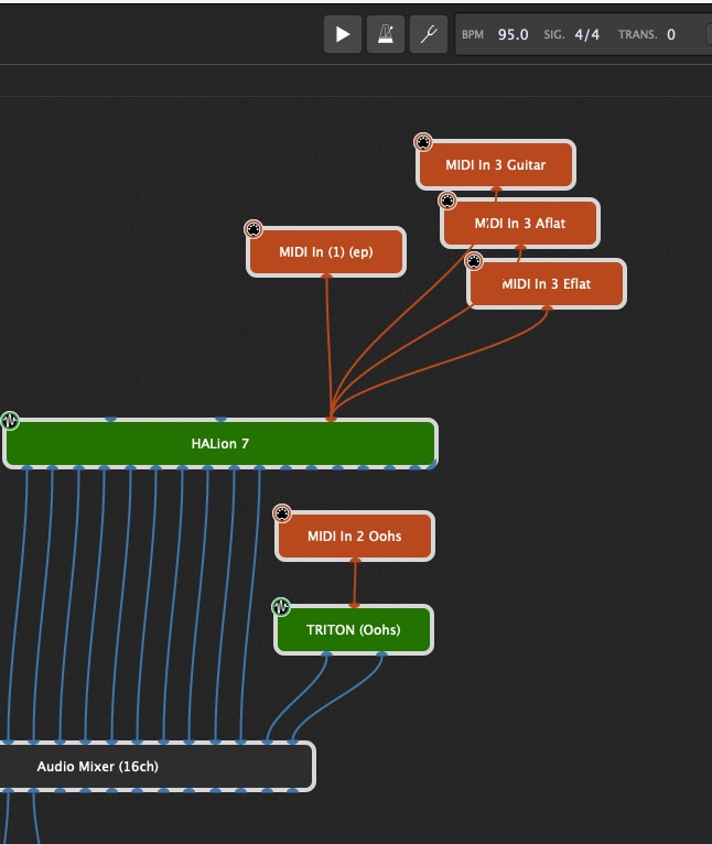 The Midi In Blocks are not using the same channel. In this rackspace I have 3 Midi In Blocks using, Midi In Dim 1, Midi In Dim 2 and Midi In Dim 3. The Midi In Dim 3 has 3 different channels. The only one working is Midi In Dim 2. I have 3 rackspaces in this gig file not working (Midi In Blocks). If I close this gig file and open/import each rackspace/song file in other gig file they work. The last gig I played, 3 rackspaces/songs did not work. In this gig file those 3 are working and now I have 3 others that are not, very strange.