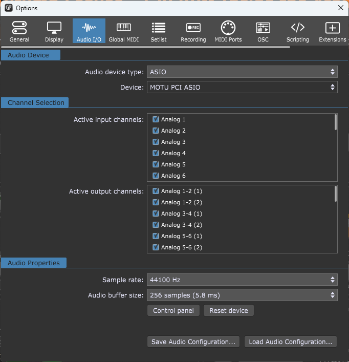 Interface is MOTU 2408 Mk II, via PCI-424 card.