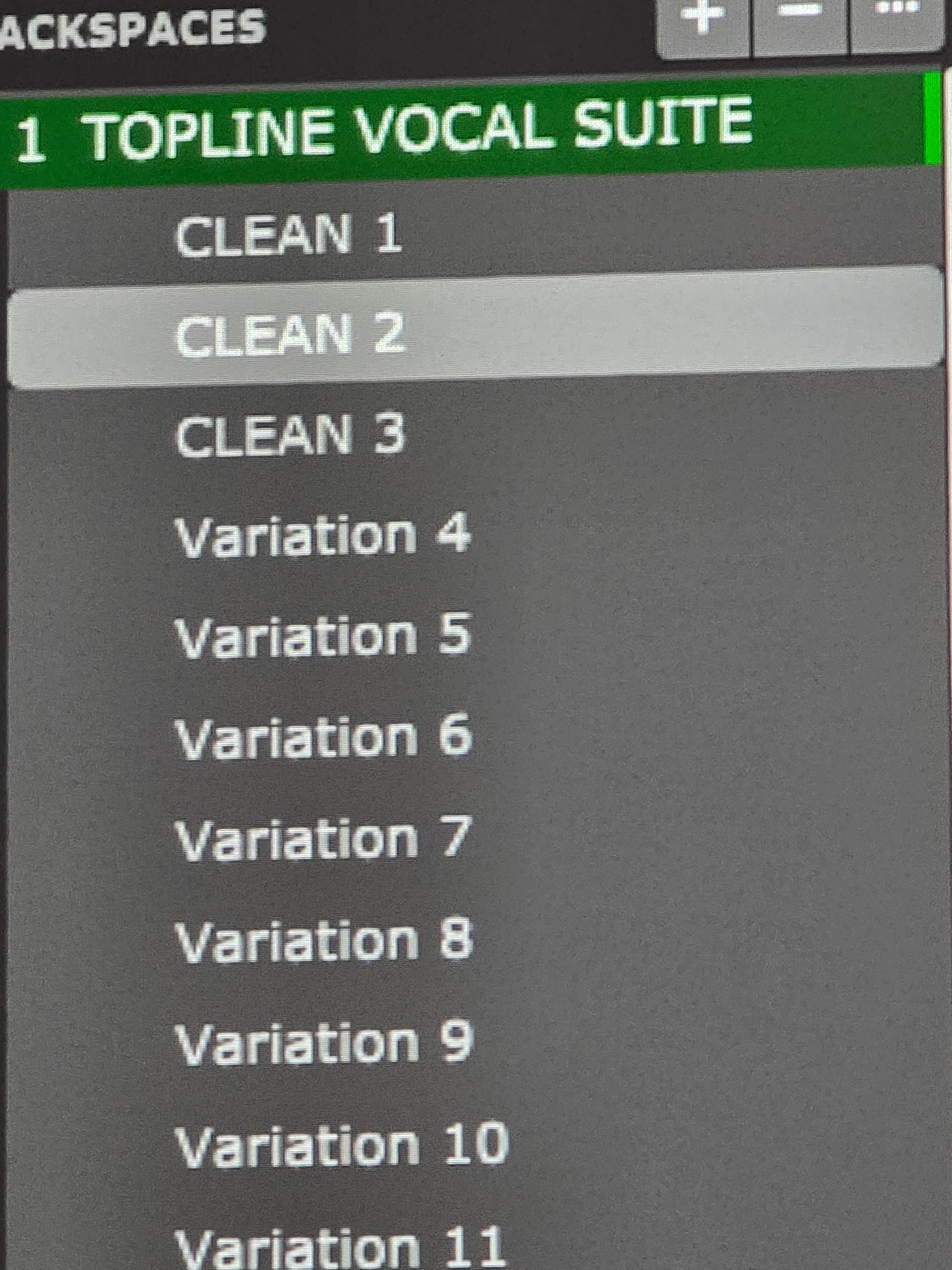 Variations are used to tweak a few parameters of a particular rackspace. A guitarist could use this to increase the amount of overdrive, for example, while keeping everything else the same.