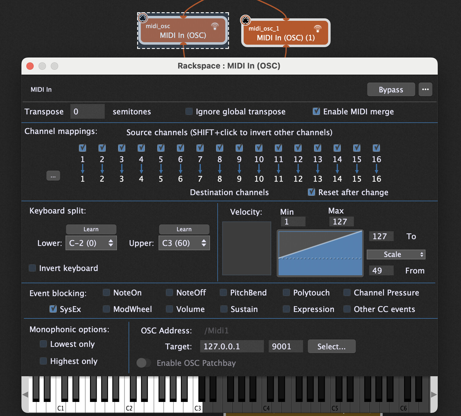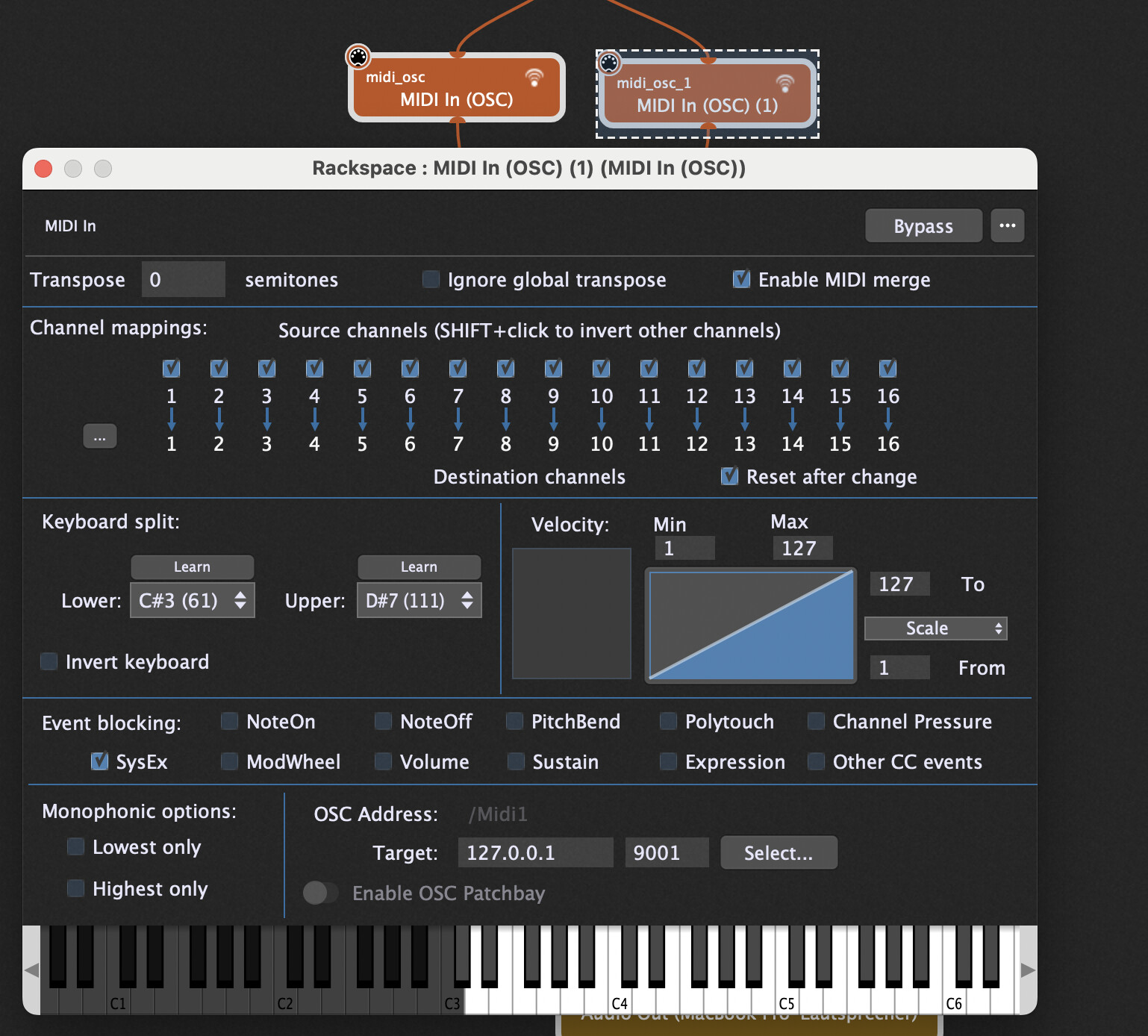Also the Range is defined for each OSC MIDI In block.