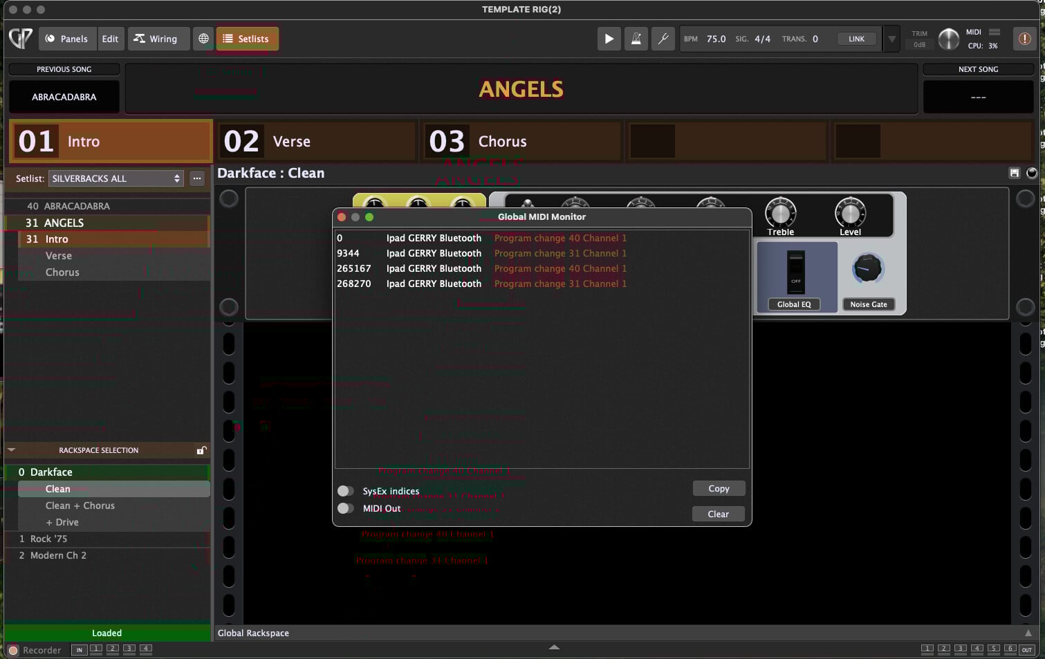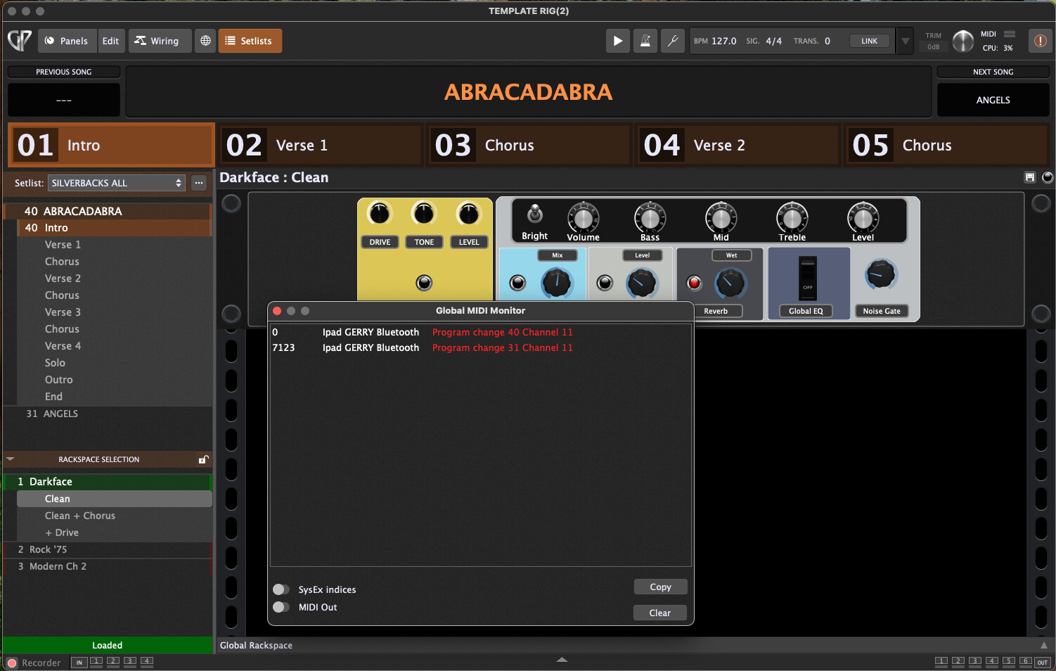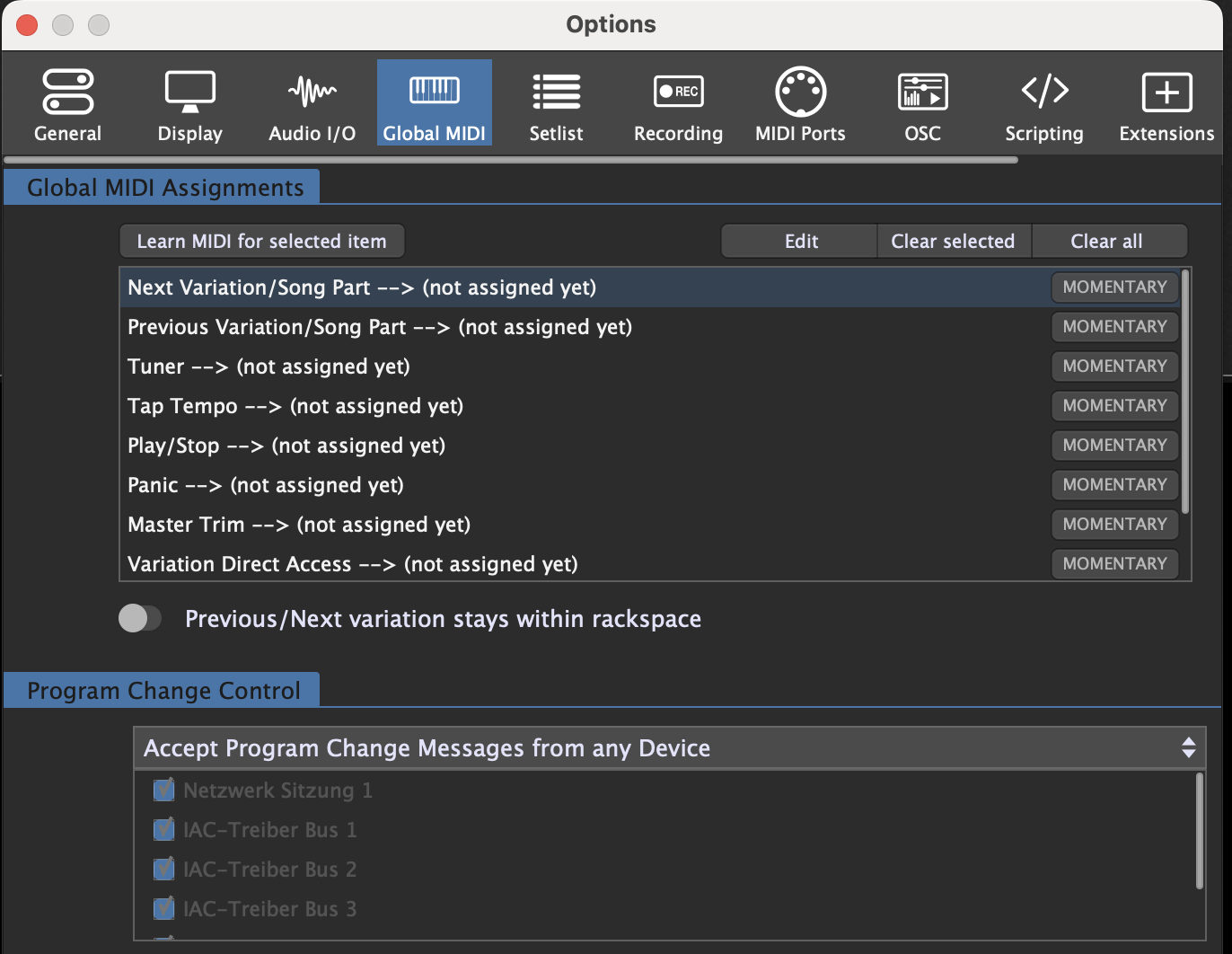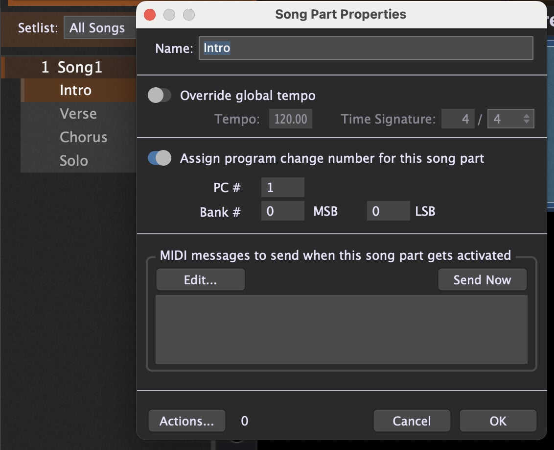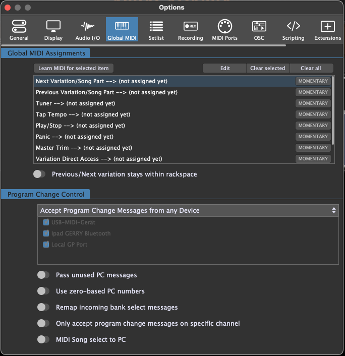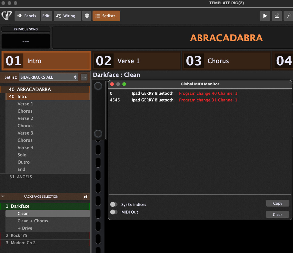 Issue Report: Song Parts do not switch in Setlist Mode despite correct incoming Program Changes