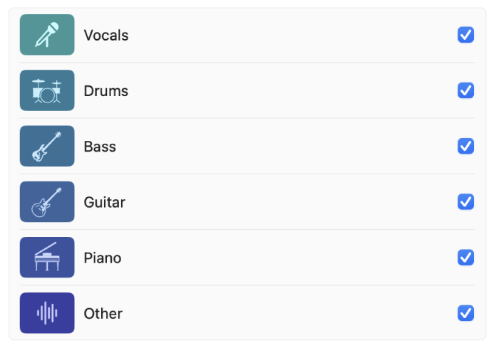 Most can separate Drums, Bass, Vocals and… the rest.