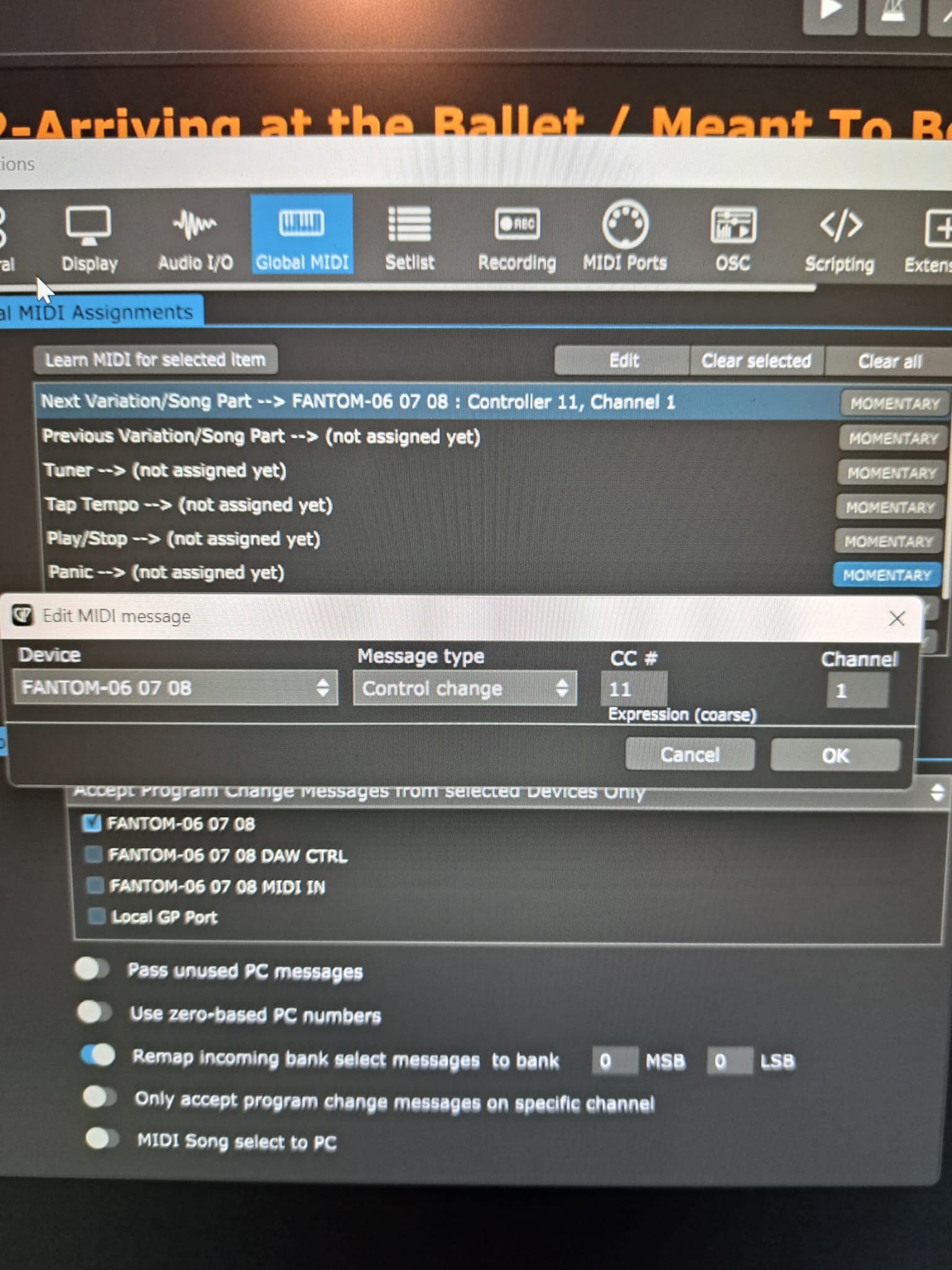 From what I see that is not the issue one is a latching switch the other is a momentary switch, neither of which should be sending the data you show in the midi monitor. You need to configure your pedal input on the Fantom. Instead of Expression you want to send just a single CC
