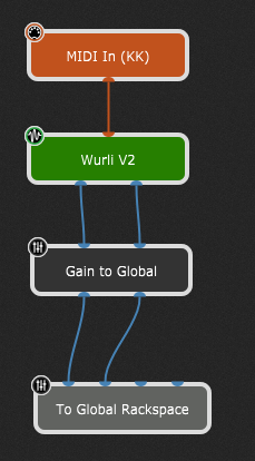 set up some rackspaces - each for one sound. I prefer to send the local rackspaces output through a separate gain block (for adjusting each rackspaces own volume) to the global rackspace, where i can have a “Global Volume” at the end of the chain…
