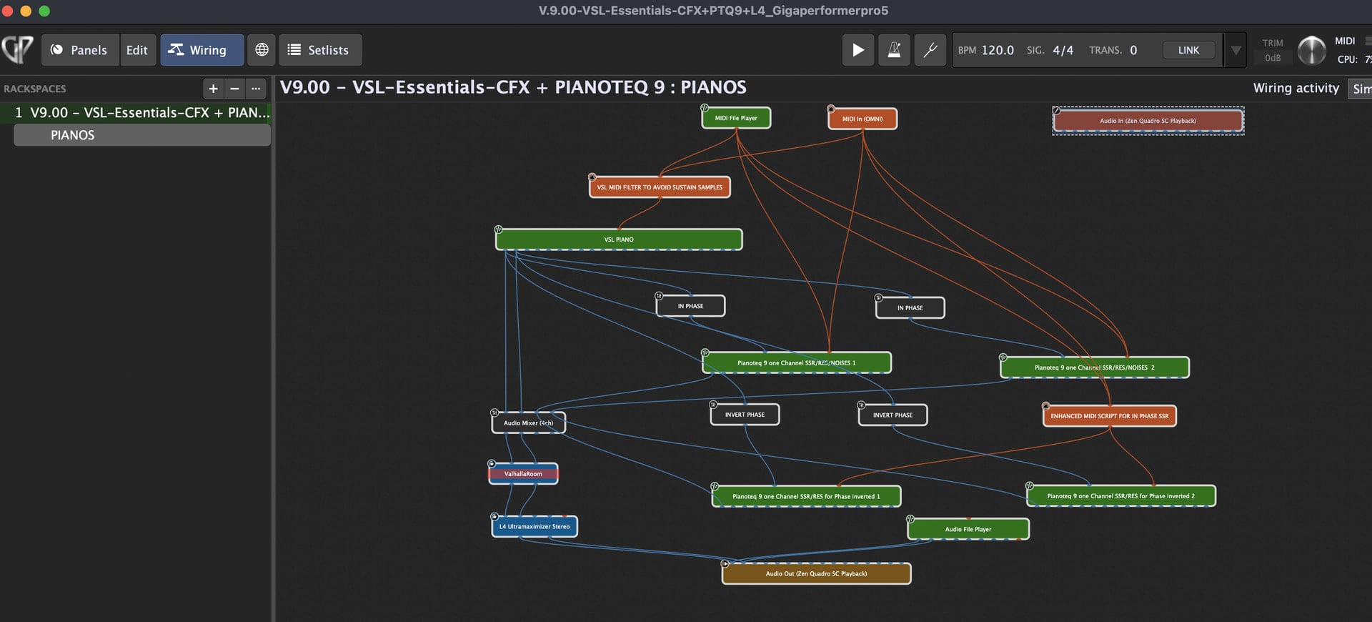 You can download my advanced programming here, including all presets for VSL pianos, if you are using Gig Performer 5.1.6 and Pianoteq 9 alongside your VSL instruments.