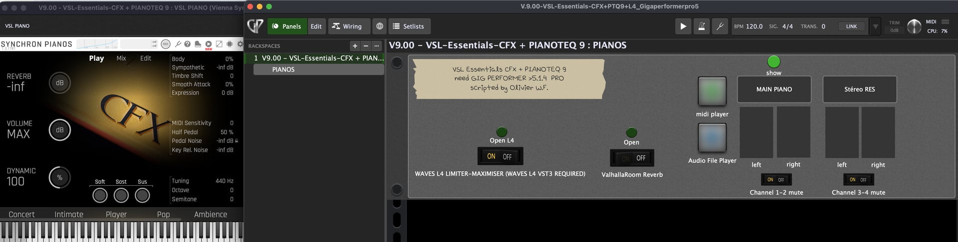 So I enhanced the VSL CFX Essentials using my advanced setup with Gig Performer 5.1.6 Pro and Pianoteq 9, bringing in realistic pedal resonance, repedaling behavior, key interaction, and smooth transitions.